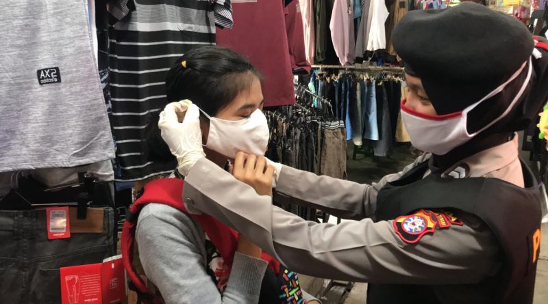 Cegah Covid-19, Srikandi Ditsamapta Polda Kalteng Bagikan Masker dan Imbau Warga di Pasar