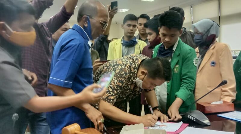 Dengan senang hati, Eviyandri, HM. Nurnas dan Bakhri Bakar menerima dan kenanda tangani pernyataan sikap mahasiswa tersebut.