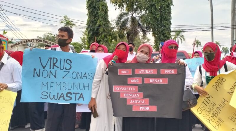 Adapun agenda aksi tersebut adalah menuntut kejelasan soal zonasi tahap tiga yang menurut para guru mematikan sekolah swasta.