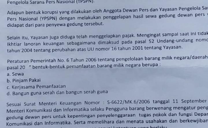 Selaku Pribadi , Ketua Kowari – Sekjen MPI mempertanyakan sejauhmana hasil Laporan Penyidikan Tipikor Yayasan Pengelola Dewan Pers dan Mantan Anggota