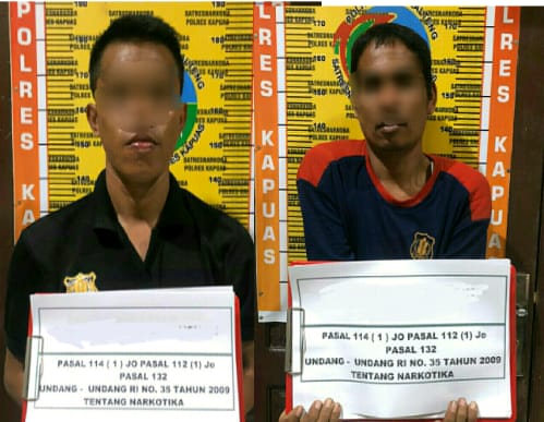 “Kedua tersangka berikut barang bukti dibawa ke Mapolres Kapuas guna penyidikan lebih lanjut. Tersabgka dijerat denagan Pasal 114 ayat (1) jo pasal 112 ayat (1) jo pasal 132 UU no 35 tahun 2009 tentang Narkotika,” pungkasnya.