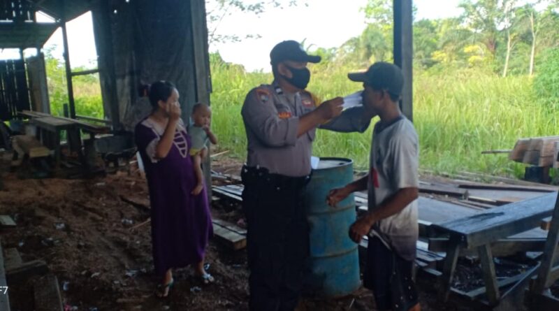 Seperti yang dilakukan oleh SPKT Polsek Bukit Batu, Aiptu Kuswadi dan rekannya, menyampaikan sosialisasi protkol kesehatan di Kelurahan Sei Gohong, Kecamatan Bukit Batu, Kota Palangka Raya, Kalimantan Tengah, Selasa (25/8/2020) siang.
