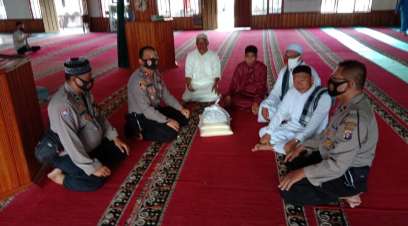 Bersama anggotanya, Kapolsek menyalurkan bantuan sosial berupa sembako yang ditujukan kepada para kaum di masjid tersebut, dimana diserahkan secara simbolis kepada Imam Masjid, Ustadz Mu’bin.