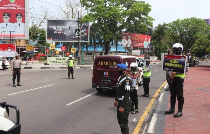 PALANG RAYA, MZK News – Sebanyak 50 personel Gabungan dari Ditlantas Polda Kalteng bersama Detasemen Polisi Militer, Satpol PP serta Dinas Perhubungan Provinsi Kalteng melaksanakan patroli humanis di seputaran Kota Palangka Raya, Senin (31/8/2020) pukul 08.00 WIB.