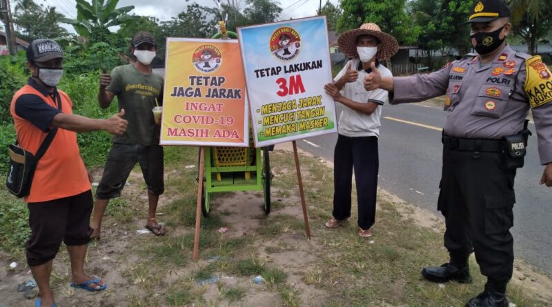 Peduli Resiko Penularan Covid-19, Kapolsek Bukit Batu Bagikan Masker dan Sosialisasikan 3M