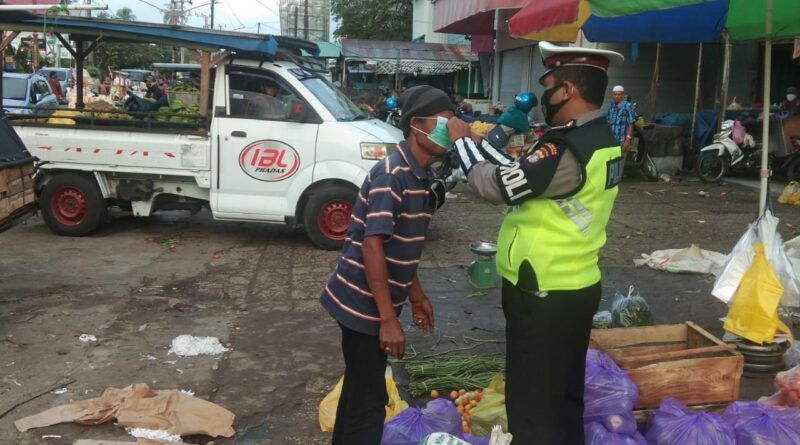 Selain penyampaian sosialisasi, Personel Satlantas juga memberikan teguran sekaligus membagikan masker kepada masyarakat maupun pedagang yang masih belum menggunakan masker.
