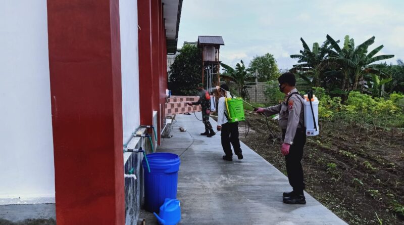 Tim Gugus Tugas Covid-19 yang terdiri dari Anggota TNI-Polri dan Relawan Bayu Duta Rescue, melaksanakan penyemprotan di Gereja GPT Imanuel Sejati yang terletak di Jl. Tjilik Riwut Km. 10,5 Kecamatan Jekan Raya Kota Palangka Raya Provinsi Kalimantan Tengah.