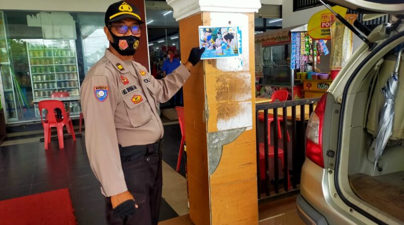 Sosialisasikan Protokol Kesehatan, Satbinmas Lakukan Pemasangan Stiker di Pusat Pembelanjaan