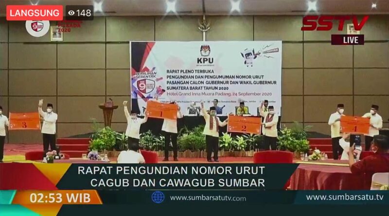 Penetapan nomor urut dan daftar pasangan calon peserta pemilihan gubernur dan wakil gubernur Sumbar tahun 2020, dengan keputusan KPU Sumbar nomor 64/PL.02.3/Kpt/13/KPU/Prov/IX/2020, berjalan tertib dan lancar.