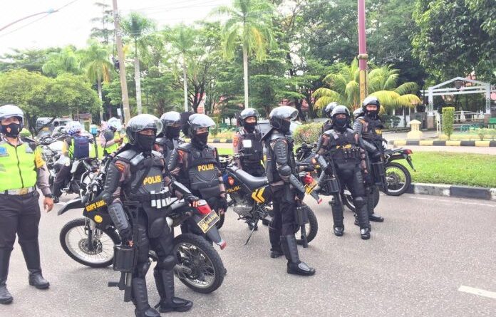 Tim Raimas Ditsamapta Polda Kalteng Sterilkan Jalur Unras