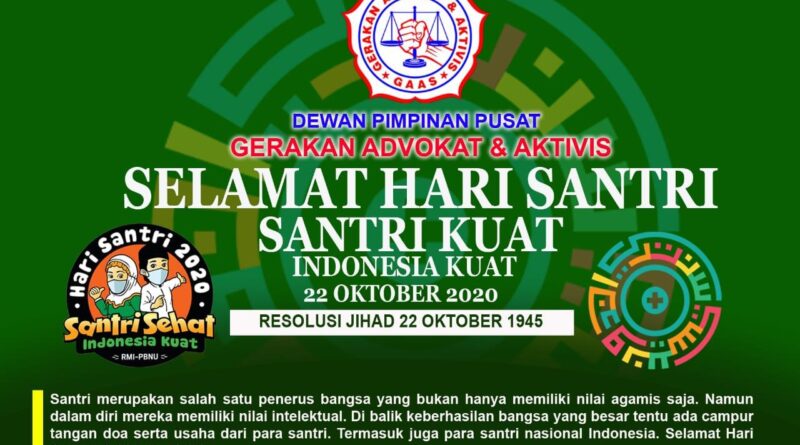 “Sayangnya kita hanya senang berindah-indah dengan artifisial, bukan yang substansial. Sehingga bangsa ini terkesan gemar akan simbol belaka. Padahal jauh dari kenyataan, karena ternyata perhatian negara terhadap Santri masih jauh dari apa yang seharusnya mereka terima, “Kata Sekjen Gerakan Advokat dan Aktivis (GAAS) Suta Widhya SH, Kamis (22/10) sore di Jakarta.