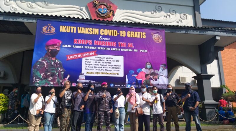 Jakarta, MZK News – TNI Angkatan Laut (TNI AL) memutuskan membantu program pemerintah dalam memerangi pandemi Covid-19 dengan mengadakan vaksinasi massal di Balai Prajurit Marinir Cilandak Jakarta Selatan, Selasa (29/6/2021).