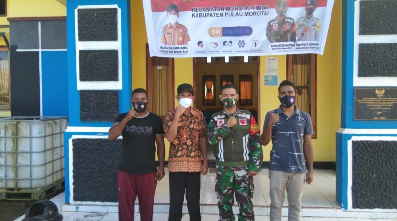 Morotai, MZK News – Babinsa Koramil 1508-05/Daruba Serma Erlanta Sihombing melakukan koordinasi dalam rangka pembuatan Posko PPKM berbasis Mikro dengan Kepala Desa Sangowo Barat. Kec. Morotai Timur Kab. Pulau Morotai, hal itu dilakukan dalam rangka Penanganan Penyebaran Covid 19 ditingkat Desa yang dipandang sangat diperlukan, Jumat (23/7/2021).
