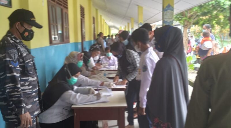 Babel, MZK News – Dalam rangka menyambut HUT Ke-76 TNI AL, Pangkalan TNI AL Bangka Belitung bekerjasama dengan Dinas Kesehatan Kabupaten Bangka dan Puskesmas Belinyu melaksanakan serbuan vaksinasi Goes To School di SMP Negeri 1 Belinyu, Kabupaten Bangka, Rabu (8/9/2021).