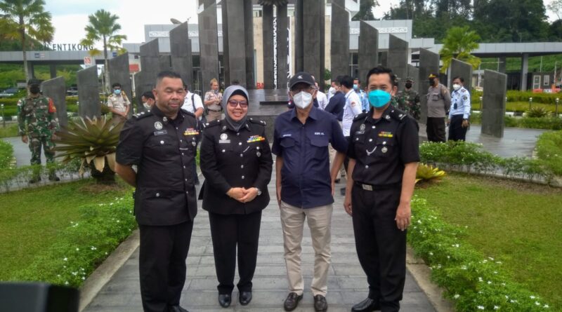 HERMONO beserta rombongan dari Kementrian Keimigrasian Malaysia tiba di pas lintas batas (PLBN) Entikong kabupaten Sanggau, Kalimantan barat, Kamis (14/10/2021) serta menggelar rapat bersama seluruh instansi vertikal terkait yang berada di PLBN entikong.