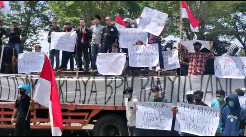 Banyuwangi, MZK News – Adanya Dugaan di lingkup BPN segelintir oknum yang menjadi mafia tanah sejumlah warga Banyuwangi gelar aksi demo geruduk Kantor Badan Nasional Pertanahan ( BPN) kabupaten Banyuwangi meminta beberapa tuntutan, Jum’at ( 5/10/2021).