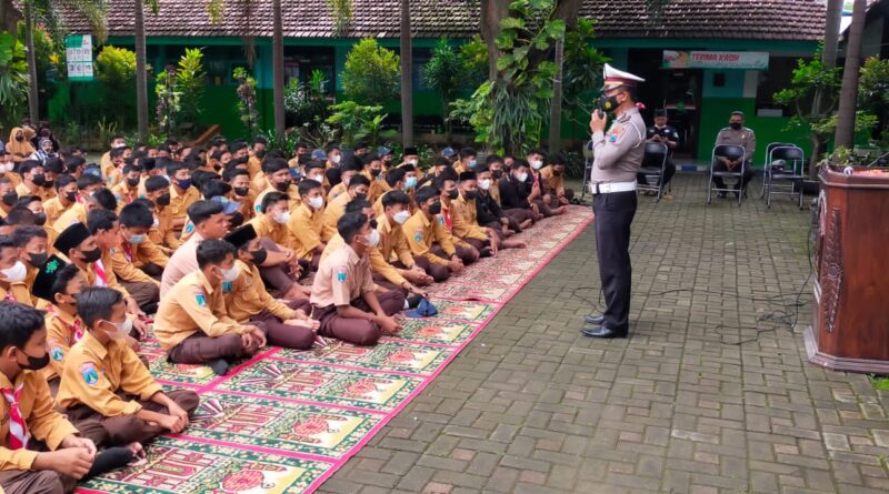 Banyuwangi, MZK News – Di lapangan MTsN 12 Banyuwangi Satuan Polisi Lalu Lintas (Satlantas) Polresta Banyuwangi bersama didampingi Tim dari BNN Kabupaten Banyuwangi melakukan Kegiatan “POLICE GO TO SCHOOL” memberikan pembinaan tertib berlalu lintas, sosialisasi prokes Covid -19 sekaligus sosialisasi bahaya penyalahgunaan narkoba kepada siswa – siswi MTsN 12 Banyuwangi di Kecamatan Wongsorejo, Jumat (28/01/2022).