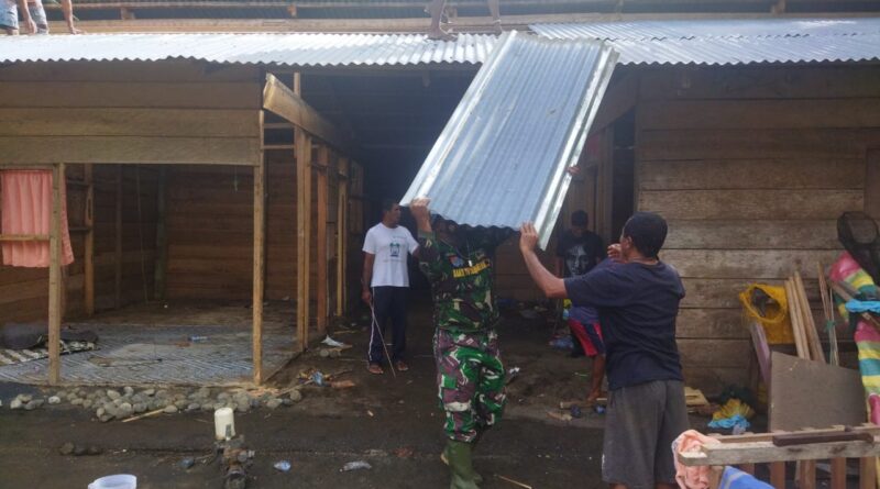 Foto: Babinsa Koramil Bere-bere bantu warga memasang dinding dan atap rumah (Foto: Ist)