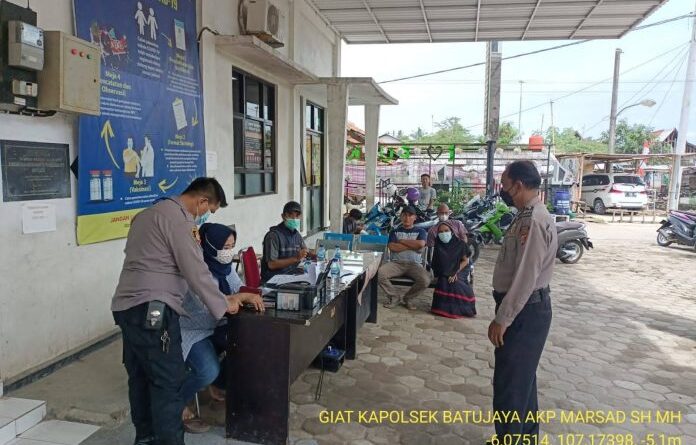 Kapolsek Batujaya turun langsung dalam giat monitoring vaksinasi di Puskesmas Batujaya dan 3 desa yang ada di Kec. Batujaya diantaranya Desa Batujaya, Desa Baturaden, dan Desa Karyabakti.