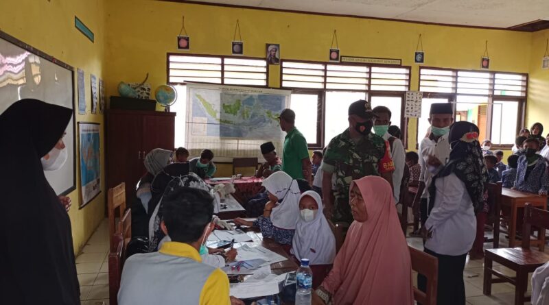 Bima, MZK News – Siswa- siswi 6 tahun diberikan vaksin di SDN Woro, Kecamatan Madapangga, Kabupaten Bima, Rabu (2/3/2022) pagi.