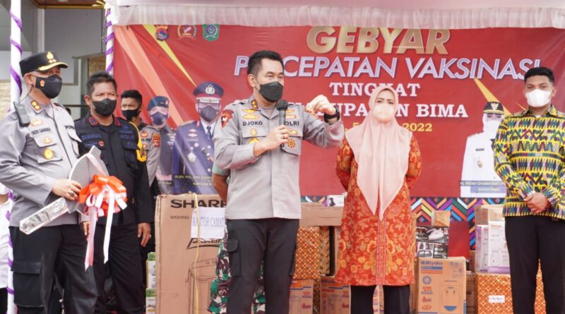 Bima, MZK News – Kapolda NTB, Irjen Djoko Poerwanto bersama pejabat umumnya (PJU) menghadiri acara gebyar percepatan berhadiah tingkat Kabupaten Bima di Lapangan Kantor Bupati Bima, Sabtu (5/3/2022) pagi.