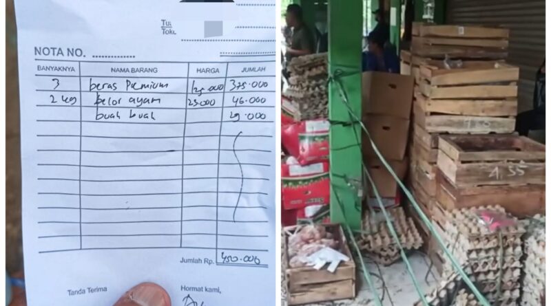 Penerima bansos menerima 3 kantong beras 10kg, telur 2 kg, dan buah-buahan. Total harga barang Rp 450.000, itu tidak sesuai dengan ketentuan dalam penerimaan Bansos yang di intruksikan regulasinya oleh Kemensos.