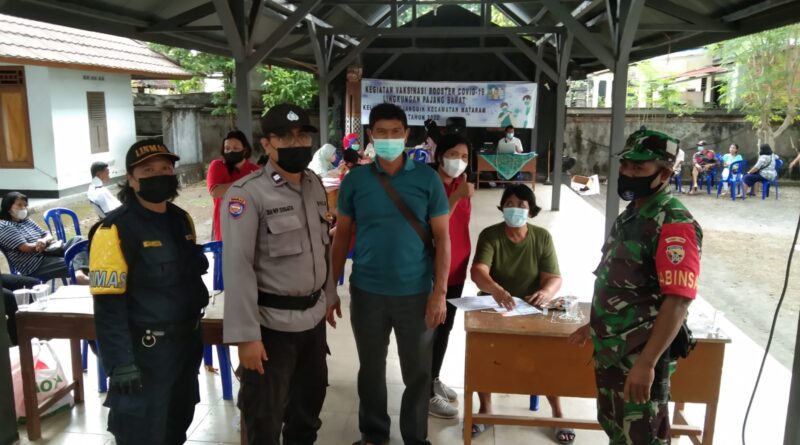 Mataram, MZK News – TNI-Polri melalui Babinsa dan Bhabinkamtibmas Kelurahan Pejanggik, Kota Selaparang, Kota Mataram mendampingi tim vaksinator Puskesmas (PKM) Pagesangan yang dikendalikan Dokter Dewi beserta delapan nakes melakukan vaksinasi booster dilaksanakan di Balai Banjar Pajang Barat, Kelurahan Pajang Barat, Rabu (9/3/2022) pagi.