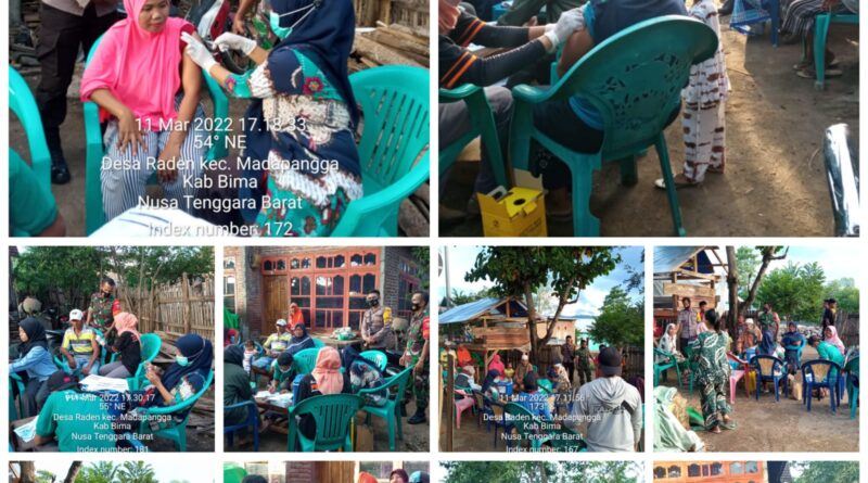 Bima, MZK News – Babinsa Koramil 1608- 02/Bolo bersama Polsek Madapangga kembali menyerbu vaksinasi di Desa Monggo, Kecamatan Madapangga, Kabupaten Bima, Jumat (11/3/2022) sore.
