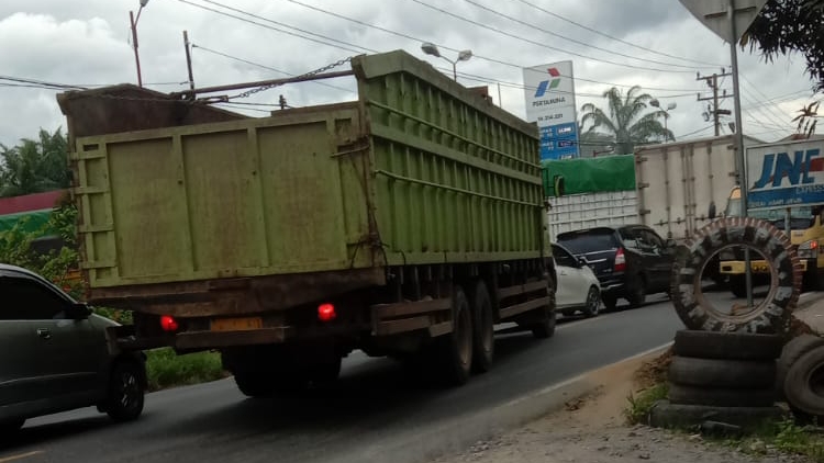 Seorang supir truk lintas dari Medan yang akan ke Jakarta bernama Putra terlihat lesu melihat keadaan ini.