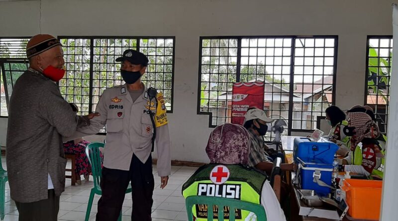 Kali ini, aparat kepolisian tersebut terlihat mengamankan jalannya vaksinasi yang berlangsung di Komplek Bukit Sungkai, Selasa (22/03/2022) pagi.