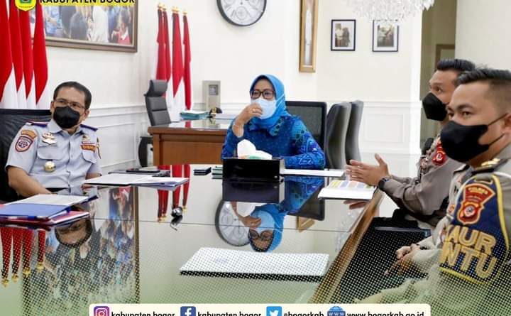 Bogor, MZK News – Bupati Bogor melakukan audiensi dengan Kasatlantas Polres Bogor, terkait rencana pembatasan kendaraan bus/truk di jalur alternatif, guna mengatasi permasalahan di Jalur Alternatif Puncak, yang dilaksanakan di Ruang Kerja Bupati Bogor, Jumat, (8/4/22).