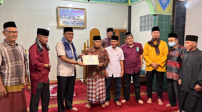 Foto: Supardi memberikan bantuan uang 50 juta secara simbolis kepada pengurus masjid (Foto: IST)