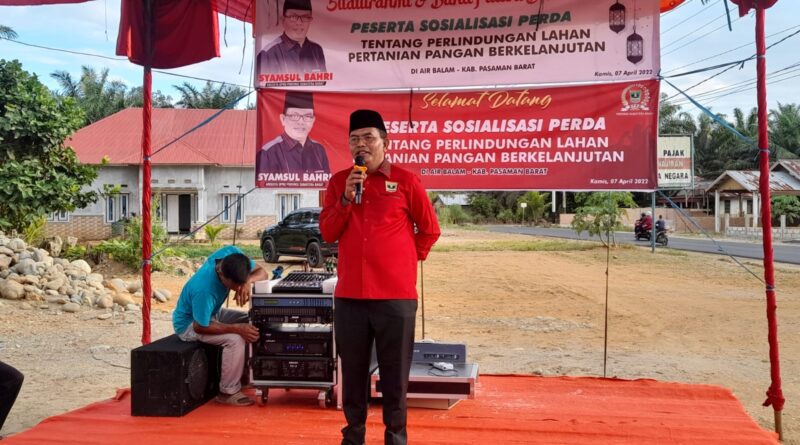 Sekaitan dengan pemberian pemahaman Perda Nomor 4/2020, Anggota Komisi II DPRD Sumbar dari PDI-P, Syamsul Bahri, melakukan sosialisasi dari tanggal 7-10 April 2022, di Kabupaten Pasaman dan Pasaman Barat.