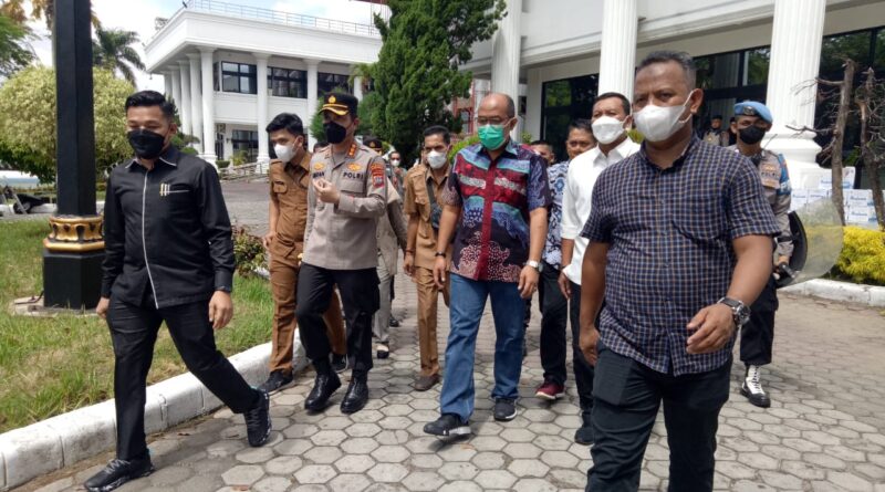 Foto: Ketua DPRD berjalan keluar untuk merespon unjuk rasa mahasiswa, Senin (11/4/2022) (Foto: IST)