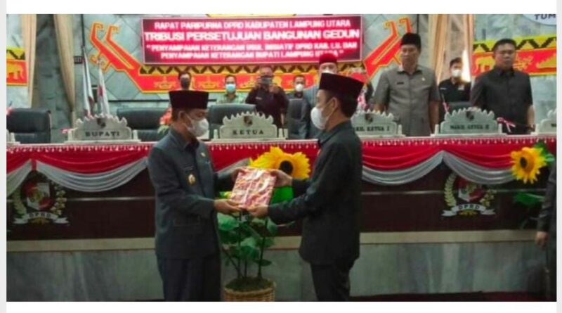 Foto: Penyerahan hasil sidang paripurna DPRD Lampura (Foto: IST)