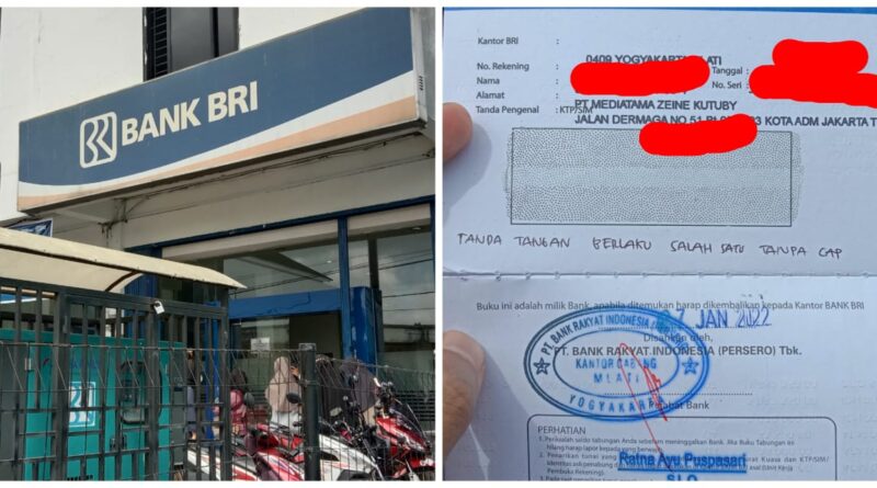 Koto Tangah, MZK News – Pimpinan Bank BRI Unit Koto Tangah, Handoko menuduh nasabah menuliskan sendiri tulisan “Tanda Tangan Berlaku Salah Satu Tanpa Cap” di halaman depan buku tabungan atas nama PT Mediatama Zeine Kutuby (PT MZK), Senin, (9/5/2022).
