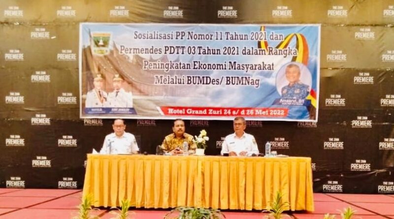 Penegasan Kadis PMD Sumbar itu disampaikannya ketika membuka Sosialisasi PP No.11 Tahun 2021 dan Permendes No.03 Tahun 2021 yang mengatur tentang Badan Hukum Bumnag atau Bumdes di Hotel Grand Zuri Premiere, Kota Padang, Selasa (24/5/2022).