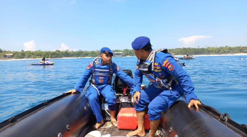 Foto: Petugas Polresta Banyuwangi melakukan patroli dan pengamanan peserta WSL dengan menggunakan 1 unit perahu karet (Foto: IST)