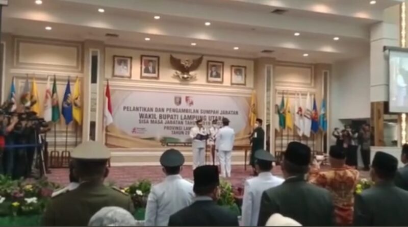 Foto: Prosesi pelantikan dan pengambilan sumpah kepada Wakil Bupati Lampura (Foto: IST)