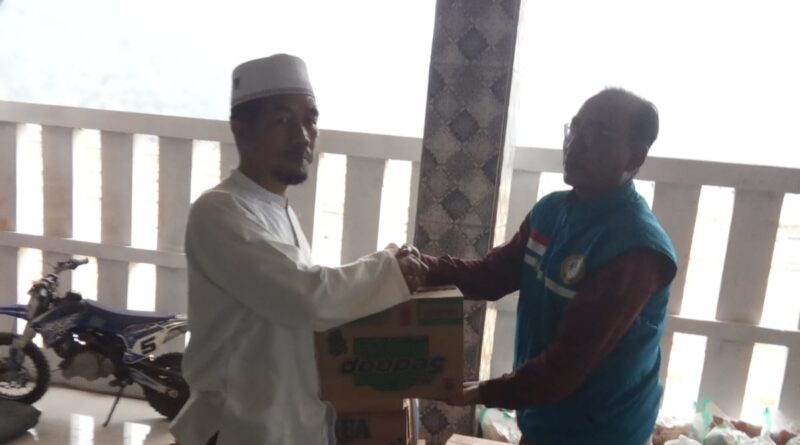 Blue Helmet Bogor Raya dan DPC Gelora Tamansari Jakarta Pusat berkunjung ke posko bantuan dan diterima oleh Ustadz Omen selaku Ketua MUI Desa Purasari, Kec Leuwiliang, Kab Bogor.