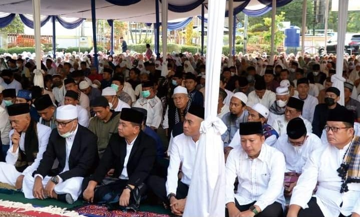 Foto: Pj Bupati Muara Enim bersama jamaah salat Id di halaman Kantor Bupati (Foto: IST)