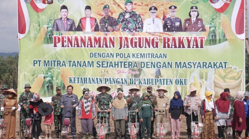 Acara dilanjutkan dengan penanaman jagung rakyat dengan pola kemitraan bersama PT Mitra Tanam Sejahtera dan masyarakat serta Forkopimda OKU.