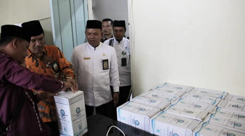 Padang Pariaman, MZK News – Pastikan ketersediaan air zam-zam bagi Jemaah Haji, Kepala Kantor Wilayah Kementerian Agama Provinsi Sumatra Barat, Dr. H. Helmi, didampingi Kepala Kantor Kementerian Agama Kabupaten Padang Pariaman, H. Syafrizal, beserta Kasi PHU, Irsyad, melakukan monitoring dan evaluasi distribusi air zam-zam di Kankemenag Kabupaten Padang Pariaman, Jumat (15/07/2022).