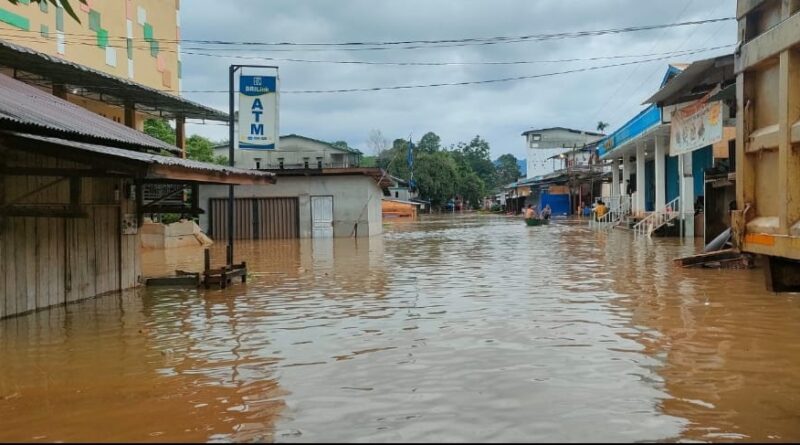 Ketapang, MZK News – Memasuki hari kedua luapan Sungai Jelai kian dalam menggenangi beberapa desa di Kecamatan Jelai Hulu, Kabupaten Ketapang, Kalimantan Barat, akibat intensitas curah hujan yang tinggi beberapa hari sebelumnya.