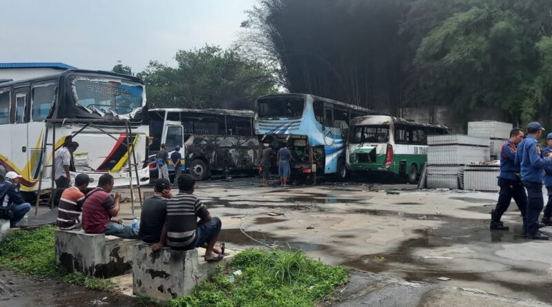 Kebakaran Hanguskan 5 Unit Bus di Babakan Madang Bogor