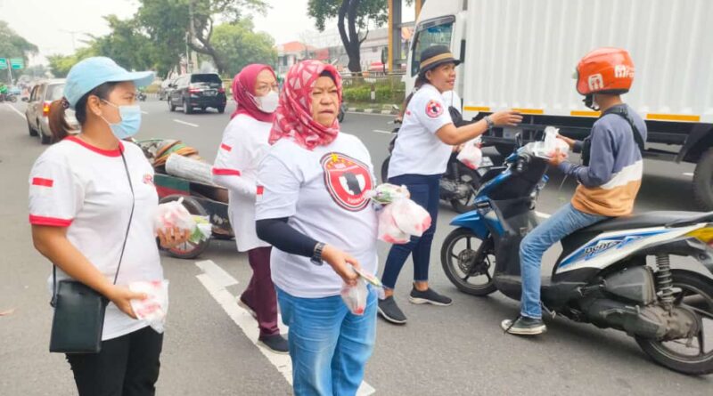 Foto: Anggota KGBN memberikan nasi kotak kepada pengguna jalan (Foto: IST)