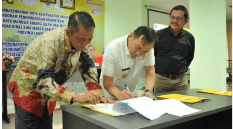 Way Kanan, MZK News – Wakil Bupati (Wabup) H. Ali Rahman, bersama Kepala Dinas Pekerjaan Umum, Edwin Bavur, menghadiri acara penandatanganan MoU Program Pengembangan Kompetensi Sumber Daya Manusia (PPK SDM) Bidang Jalan dan Jembatan di Lingkungan Dinas Bina Marga dan Bina Kontruksi bertempat di Gedung Lt. III Kantor Bina Marga Provinsi Lampung, Kamis (22/09/2022).