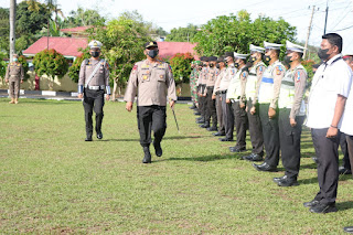Bertindak selaku Pimpinan Apel Kapolres Kampar AKBP Didik Priyo Sambodo, Perwira Apel, Kasat Lantas AKP. R. Sudaryono, dan Komandan Apel IPDA Ferry Curie Ambarita.