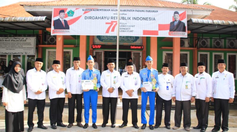 “Mewakili Kepala Kantor Kementerian Agama Kabupaten Padang Pariaman, Kami mengucapkan terima kasih dan apresiasi setinggi-tingginya atas prestasi mengharumkan nama Sumbar khususnya Kemenag Padang Pariaman,” ungkap Mukhlis M saat memberikan amanatnya sebagai inspektur upacara.
