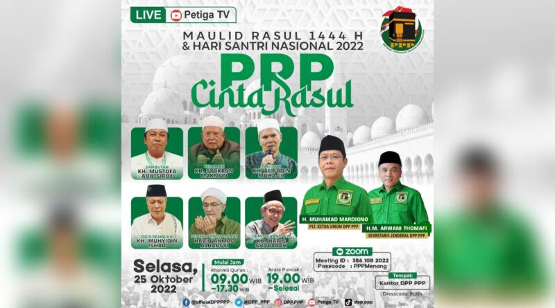 DPP PPP Akan Gelar Peringatan Maulid Nabi dan Hari Santri Nasional
